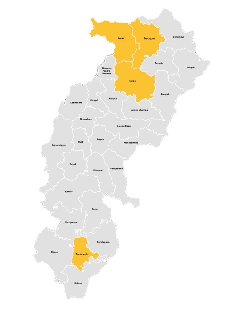 As a leading NGO in Chhattisgarh, WOTR is currently working in 100+ villages across Korea, Surajpur, Korba and Dantewada districts in the state.