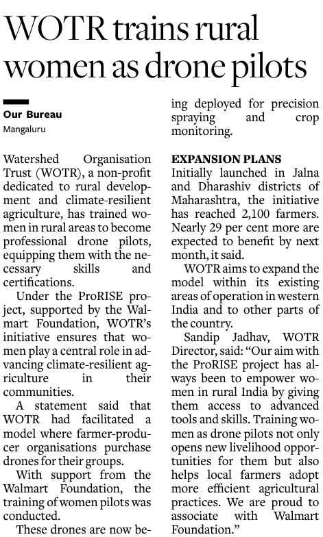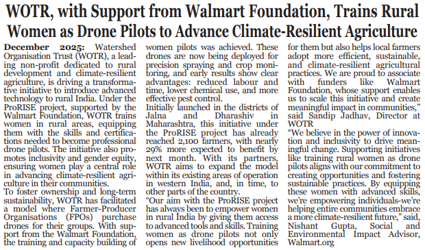 Title: WOTR, with Support from Walmart Foundation, Trains Rural Women as Drone Pilots to Advance Climate-Resilient Agriculture